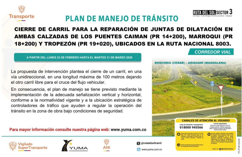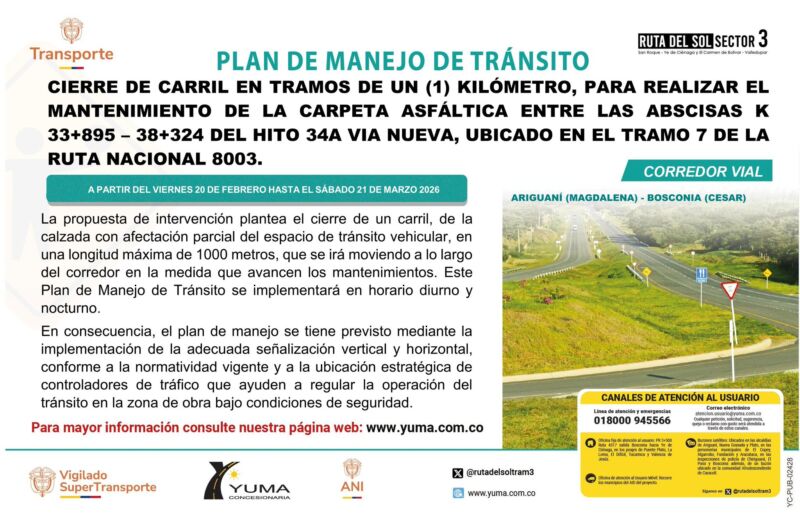 Ordenar por: Fecha de publicación Título Fecha de actualización Descargas Visitas Orden: Descendente Ascendente Aplicar el filtro PLAN DE MANEJO DE TRÁNSITO ESPECÍFICO DE CIERRE DE UN CARRIL EN TRAMOS DE UN (1) KILÓMETRO, PARA REALIZAR EL MANTENIMIENTO DE LA CARPETA ASFÁLTICA DE LOS PR 57+000 – 85+800 VN Y VMJ UBICADOS EN LA RUTA 4516. 7.58 MB 51 Descargas PLAN DE MANEJO DE TRÁNSITO ESPECÍFICO DE CIERRE DE CARRIL PARA LA REPARACIÓN DE JUNTAS DE DILATACIÓN DE LOS PUENTES CARACOLICITO (PR27+000) Y ARIGUANÍ (PR 33+091), UBICADOS EN LA RUTA 4517 ENTRE LOS MUNICIPIOS DE BOSCONIA Y FUNDACIÓN. 9.29 MB 53 Descargas PLAN DE MANEJO DE TRÁNSITO ESPECÍFICO DE CIERRE DE CARRIL PARA LA REPARACIÓN DE JUNTAS DE DILATACIÓN DE LOS PUENTES CEBOLLA (PR 58+248) Y MAPURITO (PR 60+122) UBICADOS EN LA RUTA 4516,ENTRE EL CORREGIMIENTO DE LA LOMA Y EL MUNICIPIO DE BOSCONIA (CESAR) 7.46 MB 62 Descargas PLAN DE MANEJO DE TRÁNSITO ESPECÍFICO DE CIERRE DE CARRIL PARA LA REPARACIÓN DE JUNTAS DE DILATACIÓN DEL PUENTE LAS ÁNIMAS UBICADO EN EL PR 26+050 (RUTA 4516), ENTRE LOS CORREGIMIENTOS DE SAN ROQUE Y LA LOMA EN EL DEPARTAMENTO DEL CESAR 14.23 MB 177 Descargas PLAN DE MANEJO DE TRÁNSITO ESPECÍFICO PARA APERTURA ALTRÁFICO EN DOBLE CALZADA DESDE EL PR 44+000 AL 48+400DE LA RUTA NACIONAL 4516, ENTRE EL CORREGIMIENTO DE SAN ROQUE – BOSCONIA (DEPARTAMENTO DEL CESAR). 6.96 MB 188 Descargas PLAN DE MANEJO DE TRÁNSITO ESPECÍFICO DE CIERREDE CARRIL PARA EL MONTAJE DEL PUENTE PEATONAL UBICADO EN EL PR 33+000 DE LA RUTA 4518, ACCESO A FUNDACIÓN MAGDALENA 6.90 MB 214 Descargas PLAN DE MANEJO DE TRÁNSITO ESPECÍFICO PARA APERTURA ALTRÁFICO EN DOBLE CALZADA DESDE EL PR 43+300 AL 54+500DE LA RUTA NACIONAL 8002, ENTRE LOS MUNICIPIOS DE PLATO SAN JOSÉ DE ARIGUANÍ (EL DIFÍCIL) DEPARTAMENTO DEL MAGDALENA. INCLUYENDO LA VARIANTE DEL MUNICIPIO DE NUEVA GRANADA (RUTA 80MCG) 6.90 MB 99 Descargas PLAN DE MANEJO DE TRÁNSITO ESPECÍFICO DE DESVÍO DEL FLUJO VEHICULAR BIDIRECCIONAL DE LA VIA EXISTENTE A LAVÍA NUEVA, PARA REALIZAR OBRAS DE MEJORAMIENTO ENTRE LOS PR 34+400 – 40+000 DE LA RUTA NACIONAL 8002, PLATO EL DIFICIL (MAGDALENA). 6.83 MB 240 Descargas PLAN DE MANEJO DE TRÁNSITO ESPECÍFICO DE CIERRE DE CARRIL PARA LA REPARACIÓN DE JUNTAS DE DILATACIÓN DE LOS PUENTES CANOAS (PR43+130) Y PADILLA (PR56+960), UBICADOS EN EL TRAMO 2 (RUTA 4516), ENTRE EL CORREGIMIENTO DE LA LOMAY EL MUNICIPIO DE BOSCONIA EN EL DEPARTAMENTODEL CESAR 9.40 MB 203 Descargas PLAN DE MANEJO DE TRÁNSITO ESPECÍFICO DE CIERRE DE CARRIL PARA LA REPARACIÓN DE JUNTAS DE DILATACIÓN DE LOS PUENTES CANOAS (PR43+130) Y PADILLA (PR56+960), UBICADOS EN EL TRAMO 2 (RUTA 4516), ENTRE EL CORREGIMIENTO DE LA LOMAY EL MUNICIPIO DE BOSCONIA EN EL DEPARTAMENTODEL CESAR 9.40 MB 242 Descargas 12…89101112…1819